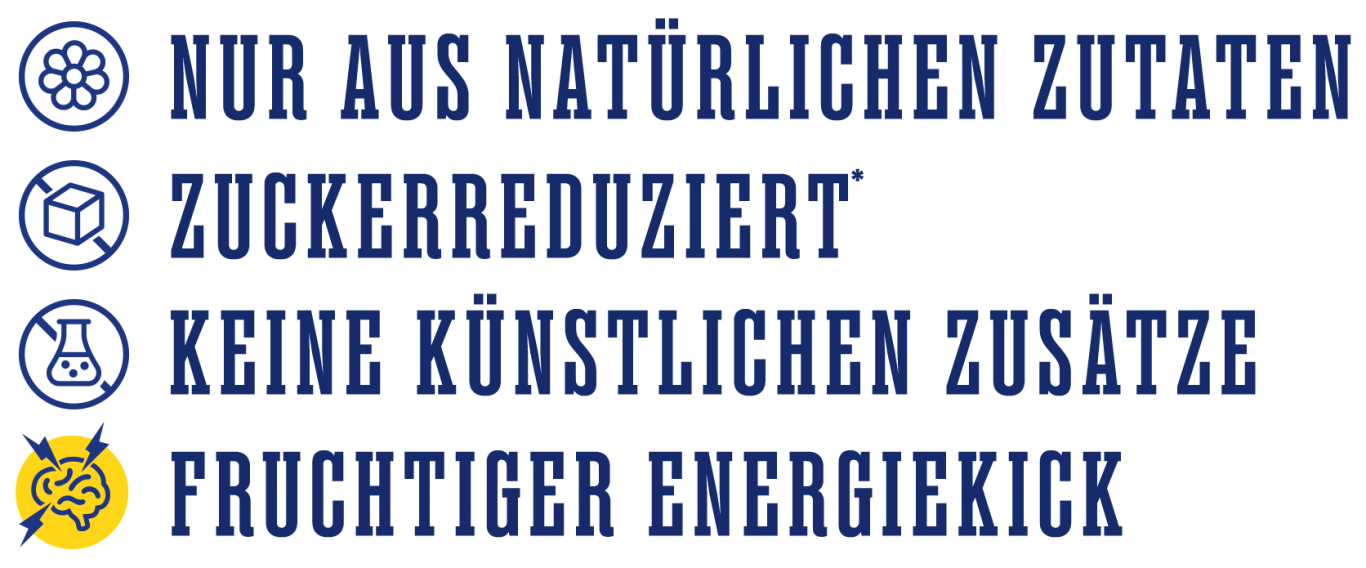 *30 % weniger Zucker im Bezug auf vergleichbare, herkömmliche Limonaden.